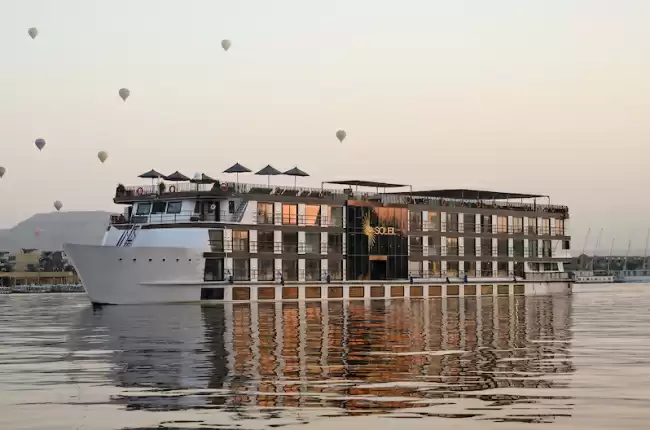 Le M/S Soleil est un navire de croisière fluviale classé 5 étoiles appartenant à la compagnie Enev. Ce navire boutique au design raffiné navige sur le Nil pour assurer les liaisons régulières entre Louxor et Assouan avec un niveau de confort moderne. Il s'adresse aux voyageurs recherchant une structure hôtelière complète et fonctionnelle pour découvrir les sites archéologiques majeurs de l'Égypte.
