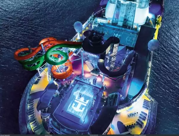 Pour varier les loisirs, vous avez le choix entre le simulateur de surf FlowRider, le mur d’escalade haut de 12 mètres, la patinoire, le mini-golf, salle de fitness, ring de boxe et terrains de sport. Sans oublier les nombreuses boutiques en duty-free, la bibliothèque et l’écran de cinéma face à la piscine.