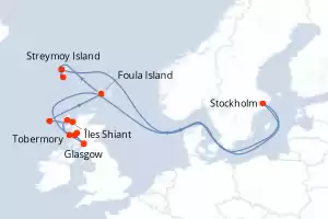 Itinéraire : Glasgow, Tobermory, Îles Shiant, Inverewe, Saint Kilda, Foula Island, Streymoy Island, Suduroy Island, Streymoy Island, Stockholm, Fort William, Loch Linnhe, Glasgow