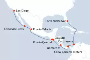 Itinéraire : Fort Lauderdale, Carthagene CO, Canal panama (Entree), Canal panama (Sortie), Puntarenas, Acajutla, Puerto Quetzal, Puerto Vallarta, Cabo san Lucas, San Diego