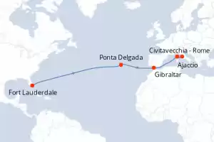 Itinéraire : Fort Lauderdale, Punta Delgada, Gibraltar, Ajaccio, Civitavecchia - Rome