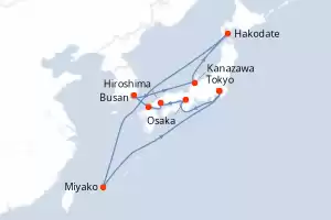 Japon, Corée du Sud Itinéraire: Tokyo , Osaka , Osaka , Hiroshima , Détroit de Kanmon , Busan , Kanazawa , Hakodate , Miyako , Tokyo , Tokyo , Osaka , Osaka , Hiroshima , Détroit de Kanmon , Busan , Kanazawa , Hakodate , Miyako , Tokyo Pension Complète Silver Moon 15 jours Suite Tokyo 19/09/2026 dès 9300 € + dès 10432 € Boissons incluses Excursions Incluses Frais de séjour inclus Cuisine Gastronomique Service de Majordome inclus Pension Complète Voir les offres