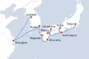 Japon,Corée du Sud,Chine Itinéraire: Tokyo , Kobe , Kobe , kochi , Beppu , Hiroshima , Aburatsu , Nagasaki , Busan , Shanghai , Shanghai , Shanghai , Incheon , Tokyo , Kobe , Kobe , kochi , Beppu , Hiroshima , Aburatsu , Nagasaki , Busan , Shanghai , Shanghai , Shanghai , Incheon Pension Complète Silver Muse 16 jours Suite Tokyo 25/09/2027 dès 10200 € Boissons incluses Excursions Incluses Frais de séjour inclus Cuisine Gastronomique Service de Majordome inclus Pension Complète Voir les offres