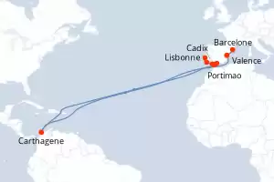 Espagne, Colombie, Portugal, Royaume-Uni Itinéraire: Lisbonne , Portimao , Cadix , Gibraltar , Malaga , Carthagene CO , Valence , Barcelone , Lisbonne , Portimao , Cadix , Gibraltar , Malaga , Carthagene CO , Valence , Barcelone Pension Complète Silver Dawn 8 jours Suite Lisbonne 25/10/2026 dès 4900 € Boissons incluses Excursions Incluses Frais de séjour inclus Cuisine Gastronomique Service de Majordome inclus Pension Complète Voir les offres