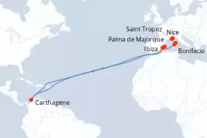 France, Espagne, Colombie, Italie Itinéraire: Nice , Saint Tropez , Bonifacio , Alghero , Carthagene CO , Ibiza , Palma de Majorque , Barcelone , Palamos , Sète , Marseille , Nice , Nice , Saint Tropez , Bonifacio , Alghero , Carthagene CO , Ibiza , Palma de Majorque , Barcelone , Palamos , Sète , Marseille , Nice Pension Complète Silver shadow 13 jours Suite Nice 06/08/2026 dès 7900 € Boissons incluses Excursions Incluses Frais de séjour inclus Cuisine Gastronomique Service de Majordome inclus Pension Complète Voir les offres