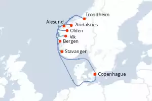 Danemark,Norvège Itinéraire: Copenhague , Alesund , Trondheim , Andalsnes , Bergen , Olden , Vik , Haugesund , Copenhague , Copenhague , Alesund , Trondheim , Andalsnes , Bergen , Olden , Vik , Haugesund , Copenhague Pension Complète Silver Dawn 11 jours Suite Copenhague 14/08/2027 dès 7500 € Boissons incluses Excursions Incluses Frais de séjour inclus Cuisine Gastronomique Service de Majordome inclus Pension Complète Voir les offres