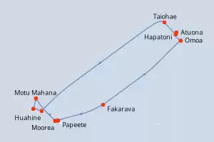 Marquises, Tuamotu et îles de la Société Itinéraire: Papeete , Fakarava , Omoa , Atuona , Hapatoni , Taiohae , Rangiroa , Bora Bora , Iles de la Societe , Huahine , Moorea , Papeete , Papeete Pension Complète Paul Gauguin 15 jours Cabine balcon Papeete 23/05/2026 dès 14000 € Pension Complète Voir les offres