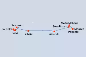 Îles Fidji, Tonga, Cook et îles de la Société Itinéraire: Papeete , Moorea , Motu Mahana , Bora Bora , Bora Bora , Aitutaki , Ligne de changement de date , Vavau , Savusavu , Suva , Beqa , Lautoka Pension Complète Paul Gauguin 16 jours Cabine extérieure Papeete 13/01/2027 dès 7710 € Pension Complète Voir les offres