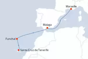 France, Espagne, Madère, Canaries Itinéraire: Marseille , Malaga , Funchal , Santa Cruz de Tenerife Pension Complète Costa Fascinosa 6 jours Cabine standard Marseille 21/11/2025 dès 389 € Enfants Gratuits jusqu'à 18 ans Club Enfants dès 3 ans All inclusive disponible Pension Complète Voir les offres