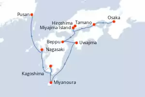 L'essentiel du Japon Itinéraire: Osaka , Tamano , Miyajima Island , Hiroshima , Beppu , Miyazaki , Kagoshima , Yakushima , Nagasaki , Pusan Pension Complète Le Soleal 9 jours Cabine extérieure Osaka 16/03/2026 dès 7450 € Boissons incluses Luxe Francophone Gastronomie Ducasse Conseils Service Majordome inclus Pension Complète Voir les offres