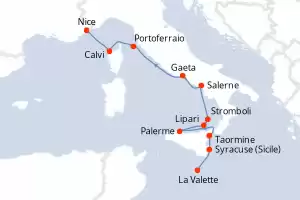 Rivages italiens et ile de Beauté Itinéraire: La Valette , Syracuse (Sicile) , Taormine , Palerme , Lipari , Stromboli , Salerne , Gaeta , Portoferraio , Calvi , Nice Pension Complète Le Boreal 10 jours Cabine extérieure La Valette 14/06/2027 dès 5770 € Boissons incluses Luxe Francophone Gastronomie Ducasse Conseils Service Majordome inclus Pension Complète Voir les offres