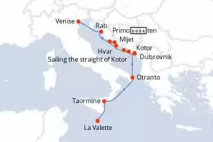 De Malte aux rives de l'Adriatique Itinéraire: La Valette , Taormine , Otranto , Kotor , Sailing the straight of Kotor , Mljet , Dubrovnik , Hvar , Primošten , Split , Rab , Venise Pension Complète Le Bougainville 9 jours Cabine balcon La Valette 19/08/2027 dès 4970 € Boissons incluses Luxe Francophone Gastronomie Ducasse Conseils Service Majordome inclus Pension Complète Voir les offres