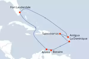 États-Unis, Antigua-et-Barbuda, Pays-Bas, Dominique Itinéraire: Fort Lauderdale , Aruba , Bonaire , La Dominique , Saint Martin (Antilles Néerlandaises) , Saint thomas , Antigua , Fort Lauderdale Pension Complète Caribbean Princess 13 jours Cabine standard Fort Lauderdale 11/12/2025 dès 496 € Cuisine raffinée Service personalisé Pension Complète Voir les offres