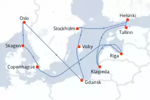 Suède, Lituanie, Estonie, Finlande, Danemark, Norvège, Pologne, Lettonie Itinéraire: Copenhague , Helsinki , Tallinn , Stockholm , Visby , Riga , Klaipeda , Gdansk , Oslo , Skagen , Copenhague Pension Complète Sapphire princess 13 jours Cabine standard Copenhague 20/06/2026 dès 1971 € Jusqu'à -50% + Jusqu' à 600$ de crédit bord offert Cuisine raffinée Service personalisé Pension Complète Voir les offres