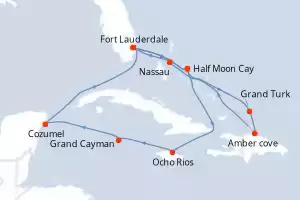 Bahamas, Antilles, Jamaïque, Mexique Itinéraire: Fort Lauderdale , Half Moon Cay , Ocho Rios , Grand Cayman , Cozumel , Fort Lauderdale , Half Moon Cay , Grand Turk , Amber cove , Nassau , Fort Lauderdale Pension Complète MS Eurodam 15 jours Cabine standard Fort Lauderdale 22/03/2026 dès 1609 € Cuisine Raffinée Animations à bord exclusives Expérience Premium Pension Complète Voir les offres