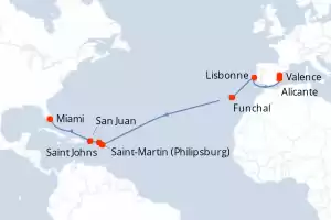États-Unis, Bahamas, Pays-Bas, Portugal, Espagne, France Itinéraire: Marseille , Barcelone , Funchal , Saint-Martin (Philipsburg) , Ocean cay MSC marine reserve , Miami , Miami Pension Complète MSC Poesia 16 jours Cabine balcon Marseille 08/04/2026 dès 1301 € Black friday jusqu'à -50% Internet à bord Enfants Gratuits jusqu'à 12 ans Clubs Enfants dès 3 ans Pension Complète Voir les offres