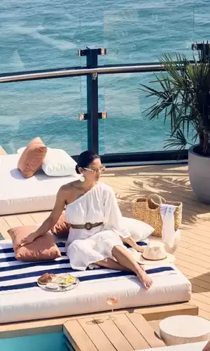L’hébergement constitue l’un des points forts de l’expérience. Les yachts de la collection sont exclusivement composés de suites, toutes dotées d’une terrasse privée avec vue sur la mer. Ces espaces, généreux et baignés de lumière, ont été pensés pour prolonger le sentiment d’évasion jusque dans l’intimité de la cabine. Le décor associe élégance contemporaine, confort résidentiel et finitions haut de gamme, dans un esprit rappelant les plus belles adresses Ritz-Carlton. L’ensemble crée une atmosphère de résidence privée en mer, idéale pour profiter d’un voyage placé sous le signe de la sérénité.