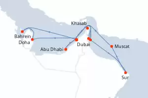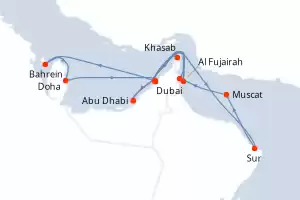 Arabie Saoudite, Qatar, Emirats Arabes Unis, Oman, Bahrein Itinéraire: Dubai , Dubai , Abu Dhabi , Bahrein , Doha , Dammam , Dubai , Dubai , Khor Fakkan , Sur , Muscat , Khasab , Dubai Pension Complète EXPLORA II 15 jours Suite Dubai 14/12/2026 dès 6695 € Jusqu'à 40% de remise Wifi inclus Frais de service inclus Une bouteille de champagne de bienvenue incluse Pension Complète Voir les offres