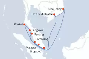 Singapour,Thaïlande,Malaisie,Vietnam Itinéraire: Singapour , Phuket , Langkawi , Penang , Ho Chi Minh-Ville , Ho Chi Minh-Ville , Ho Chi Minh-Ville , Nha Trang , Singapour , Port Klang , Malacca , Singapour , Singapour , Phuket , Langkawi , Penang , Ho Chi Minh-Ville , Ho Chi Minh-Ville , Ho Chi Minh-Ville , Nha Trang , Singapour , Port Klang , Malacca , Singapour Pension Complète Silver Muse 17 jours Suite Singapour 19/12/2027 dès 10600 € Boissons incluses Excursions Incluses Frais de séjour inclus Cuisine Gastronomique Service de Majordome inclus Pension Complète Voir les offres